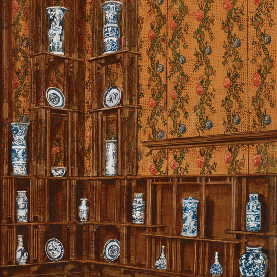 Jeckyll succumbed to the mental illness that had been troubling him intermittently for some time and had to stop his work, entering Heigham Hall, a private asylum just outside Norwich in November 1876. Whistler took over, overpainting the leather panels to create a unified design in blue and gold.