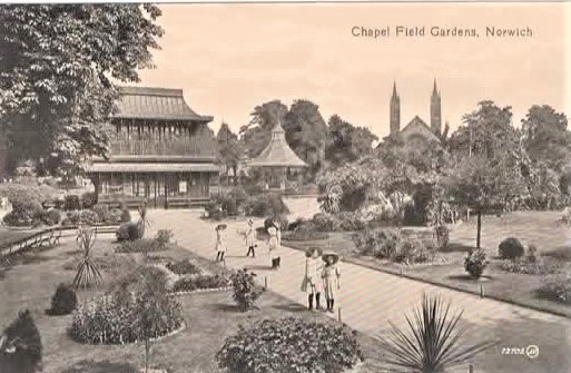 Unfortunately not many of Jeckyll’s Japanese influenced buildings or architectural details survive – the Boileau Fountain which had seigaiha panels and the Chapelfield Gardens Pagoda in Norwich have been pulled down.