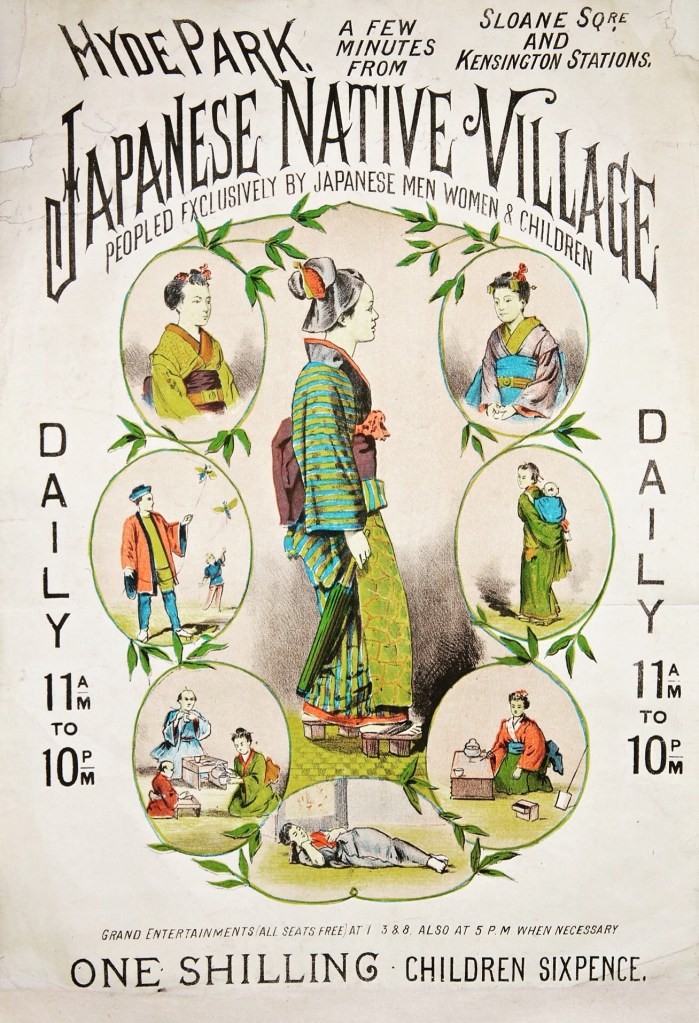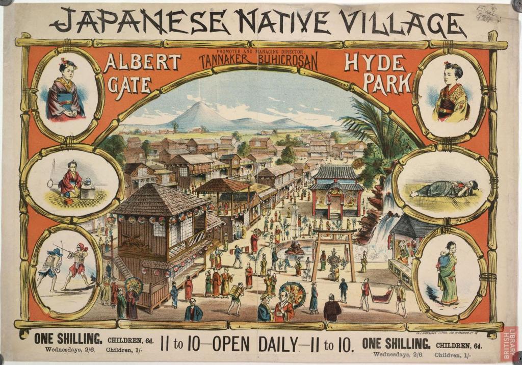 “Japan Past and Present: The Manners and Customs of the Japanese. Also a Description of the Japanese Native Village (Promoted by Tannaker Buhicrosan) [Erected at] Albert Gate, Hyde Park” by Otakesan Buhicrosan