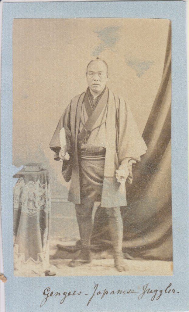 1867 Genjiro 源次郎 in 1867 passport records for Lenton & Smith troupe to Hong Kong, and then onto Australia, including Isokichi and Chiyokichi. Address given as household of Isokichi’s daughter.