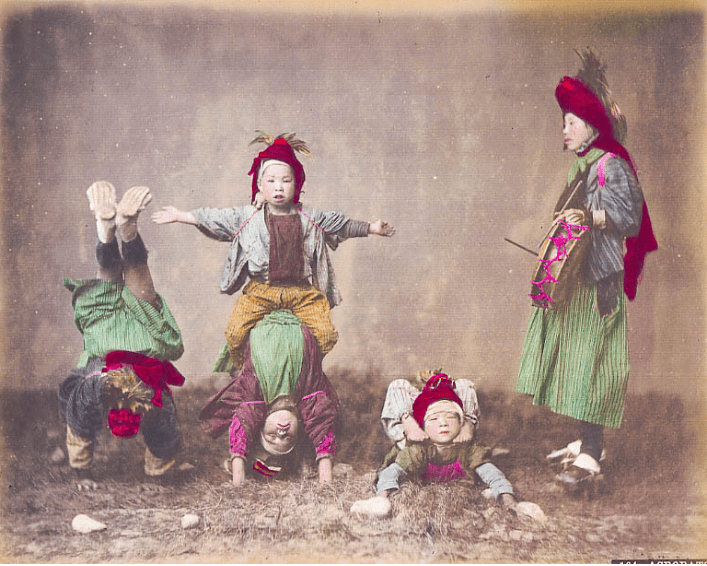 It seems likely that the younger children in troupes (“five boy contortionists”) such as the Royal Tycoon’s Private Troupe were recruited as kakubeejishi and not actually related to older troupe members.